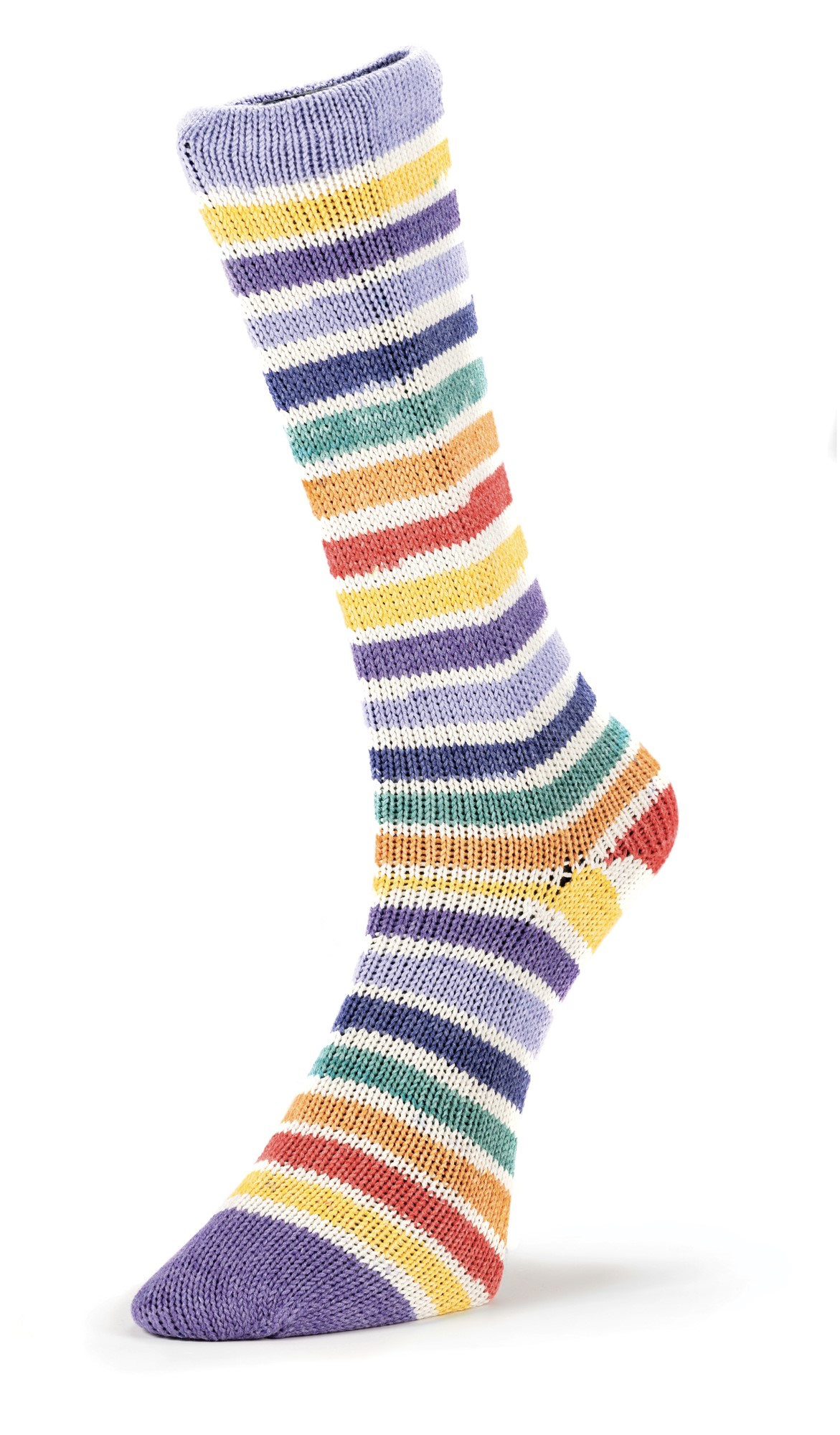 Особенности: окрашивание полосками — из одного мотка можно связать пару симметричных носков