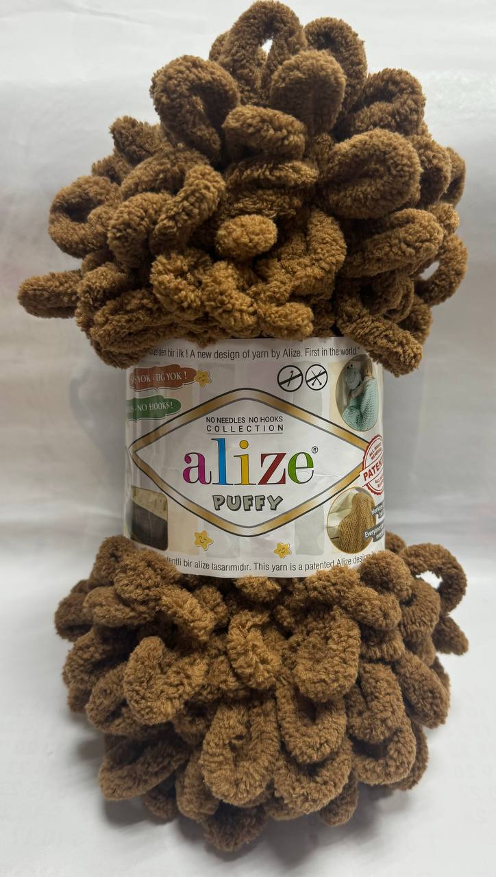 Пряжа Alize Puffy - это уникальная плюшевая пряжа, для ее вязания не нужны ни спицы, ни крючок. Нить Ализе Пуффи состоит из готовых петель, которые легко сплетать между собой в разнообразные узоры. Высота петли пряжи Пуффи - 4 см.