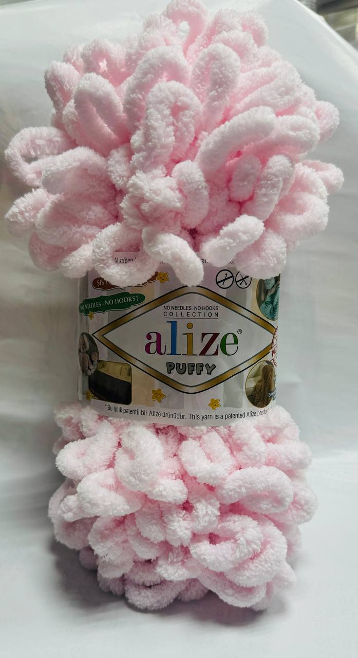 Пряжа Alize Puffy - это уникальная плюшевая пряжа, для ее вязания не нужны ни спицы, ни крючок. Нить Ализе Пуффи состоит из готовых петель, которые легко сплетать между собой в разнообразные узоры. Высота петли пряжи Пуффи - 4 см.