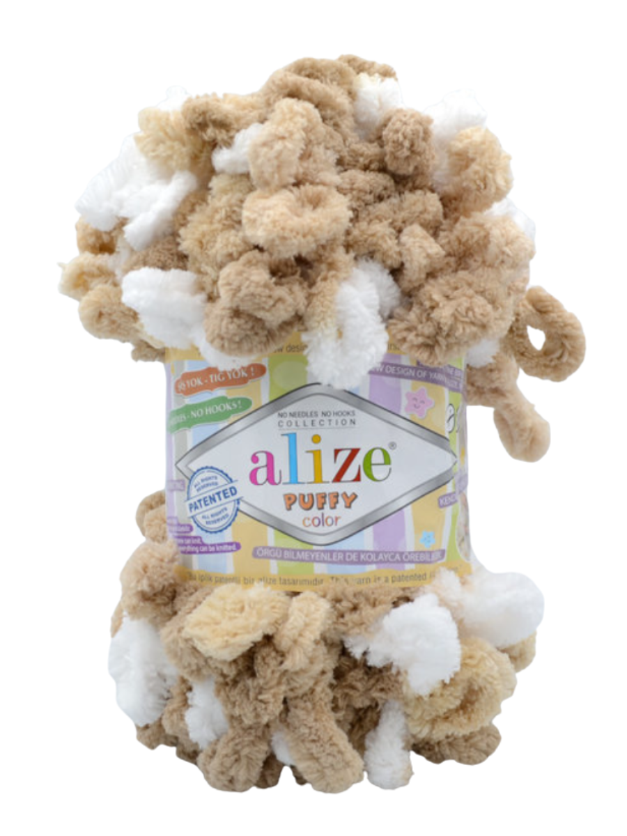 Пряжа Alize Puffy color - это разноцветная версия плюшевой пряжи Alize Puffy. Чтобы вязать ее, не нужны ни спицы, ни крючок. Ализе Пуффи колор состоит из готовых петель, которые легко сплетать между собой в разнообразные узоры. Высота петли пряжи Пуффи колор - 4 см.
